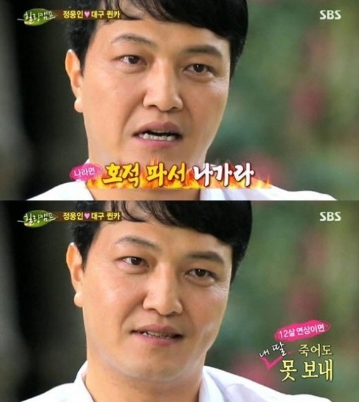 이날 방송에서 정웅인은 자신보다 12살 어린 아내와 결혼하게 된 사연을 털어놨다. 그는 당시 나이차와 연예인이라는 직업 때문에 망설였던 장인, 장모를 설득해 결혼에 성공했다고 밝혔다.