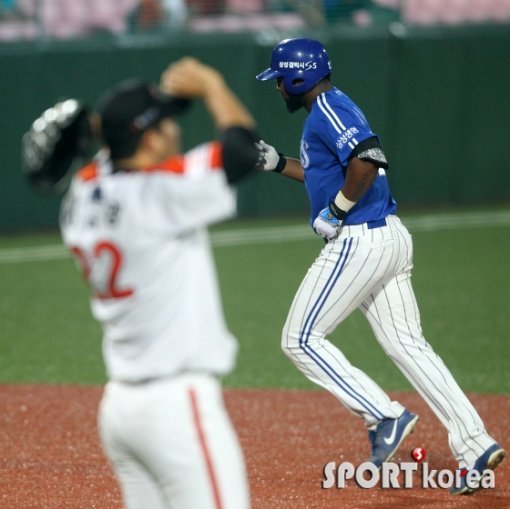 5일 청주구장에서 열린 ‘2014프로야구’ 한화 이글스와 삼성 라이온즈의 경기에서 삼성 나바로가 4회초 2사 후 한화 이태양으로 부터 비거리 115미터 좌월 솔로홈런을 치고 베이스를 돌고 있다.