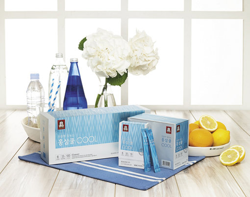 인삼공사의 다양한 ‘홍삼’ 제품들 중에서도 차게 해서 마실 수 있는 액체형 제품들이 인기다. 홍삼쿨은 홍삼농축액 분말이 찬물에도 바로 희석될 수 있도록 만들어 섭취의 편의성을 크게 높인 제품이다. 사진제공|KGC인삼공사