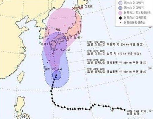 우리나라가 11호 태풍 할롱 경로에 접어들었다.