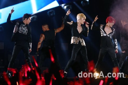 그룹 JYJ가 9일 오후 서울시 송파구 잠실주경기장에서 열린 2014 JYJ 아시아 투어 ‘THE RETURN OF THE KING’에서 멋진 공연을 하고 있다.