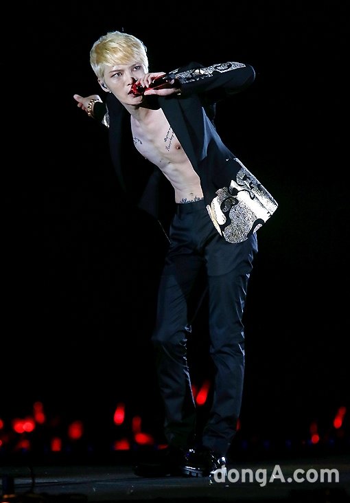 그룹 JYJ가 9일 오후 서울시 송파구 잠실주경기장에서 열린 2014 JYJ 아시아 투어 ‘THE RETURN OF THE KING’에서 멋진 공연을 하고 있다.
