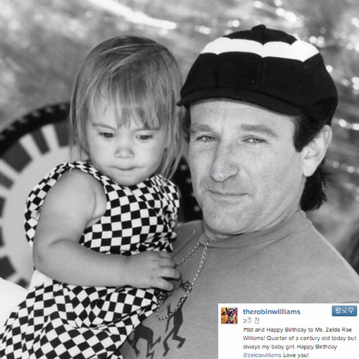 로빈 윌리엄스는 지난달 31일(이하 현지시각) 자신의 인스타그램 계정을 통해 “딸(Zelda Rae Williams) 생일 축하한다. 이제 스물 다섯 숙녀가 됐지만 넌 언제나 내게 귀여운 소녀란다. 사랑해”라는 글과 사진을 올렸다.