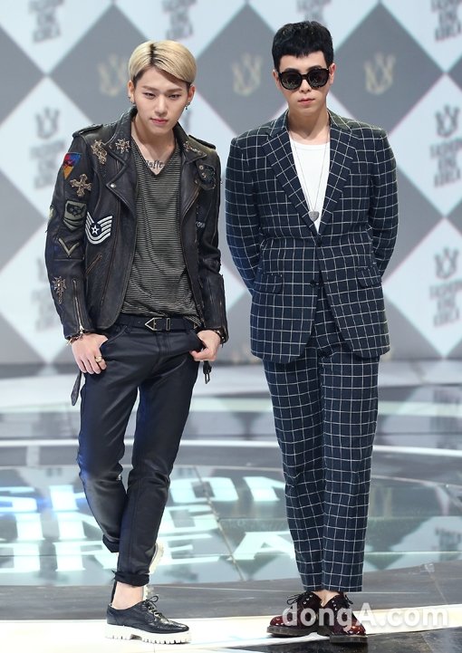 그룹 블락비의 멤버 지코(왼쪽), 피오가 13일 오후 서울시 마포구 SBS 프리즘타워에서 열린 SBS ‘패션왕 코리아 시즌2’ 제작발표회에서 포토타임을 하고 있다.