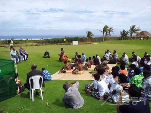 대회장은 이미 축제 분위기로 달아올랐다. 12일 공식 연습일부터 연습그린 앞에선 피지 전통음악에 맞춰 춤을 추는 흥겨운 무대가 펼쳐졌다. 연습하던 선수들 중 일부는 함께 춤을 추며 축제 분위기를 즐겼다. 주한피지관광청 박지영 지사장은 “피지에서 골프가 인기스포츠 종목은 아니지만, 이번 대회를 계기로 분위기가 바뀔 것 같다. 흥겹고, 피지만의 독특한 매력이 가득한 골프대회를 볼 수 있을 것”이라고 말했다.