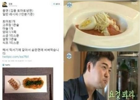 만화가 김풍이 토마토 냉면 레시피를 공개해 화제로 떠올랐다.