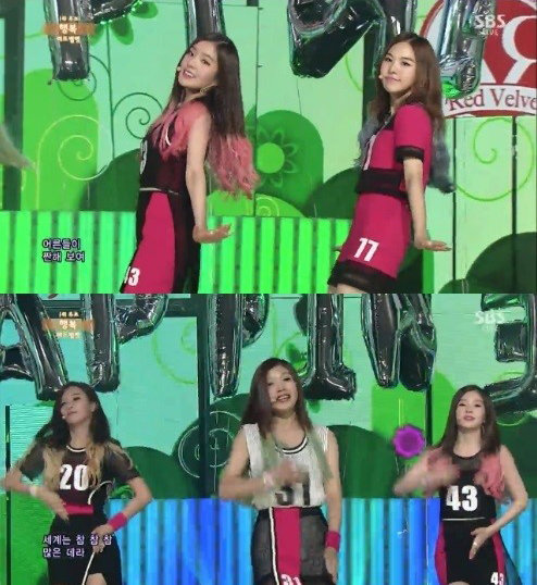 이날 방송에서 레드벨벳은 깜찍한 의상을 입고 등장했다. 데뷔 2주 만에 1위 후보에 오른 이들은 상큼 발랄한 무대를 펼쳤다.