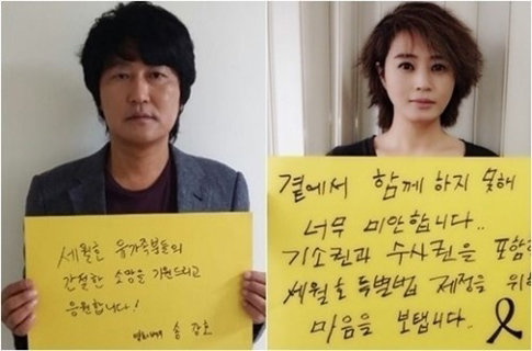 톱스타 송강호와 김혜수가 16일 세월호 특별법 제정을 촉구하며 유가족에게 응원 메시지를 전했다.