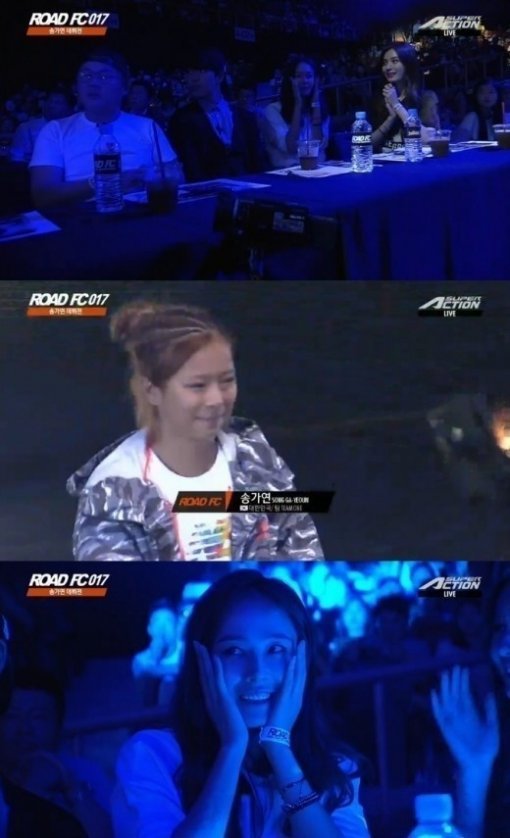이날 송가연은 자신 있는 모습으로 무대에 등장한 가운데 그를 응원하기 위해 경기장을 찾은 ‘룸메이트’ 조세호, 홍수현, 박민우, 나나 등이 화면에 비춰졌다.