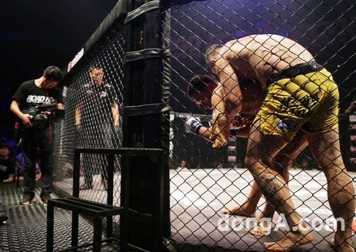 이종격투기 선수 김내철과 유양래가 17일 오후 서울 송파구 방이동 올림픽공원 올림픽홀에서 열린 '로드FC 017' 경기에서 맞붙고 있다.