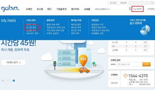 <먼저 마이가비아 > 호스팅 관리를 선택하세요>