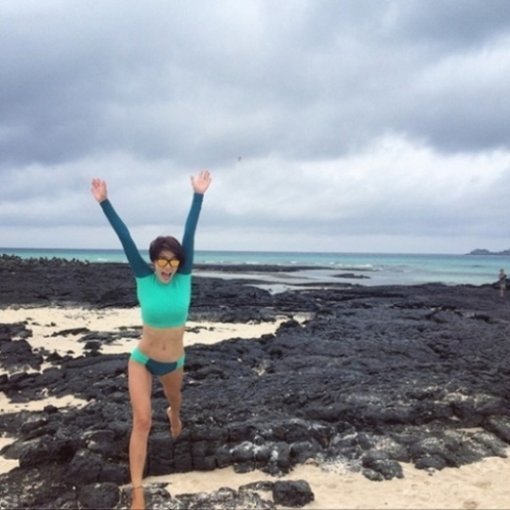 공개된 사진 속 가희는 바다 색을 닮은 래쉬 가드를 입고 양손을 번쩍 든 채 점프를 하고 있다. 특히 가희의 탄탄한 복근과 늘씬한 각선미가 누리꾼들의 시선을 사로잡고 있다.