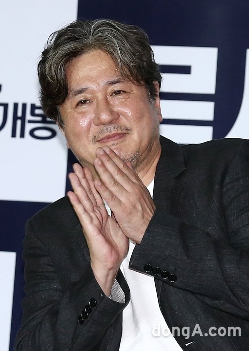 배우 최민식이 20일 오후 서울 용산구 용산CGV에서 열린 영화 ‘루시’ 언론시사회에서 박수를 치고 있다.