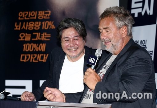 뤽 베송 감독(오른쪽)과 최민식이 20일 서울 용산구 용산 CGV에서 열린 영화 ‘루시’(감독 뤽 베송)언론시사회 및 기자간담회에 참석해 취재진과 질의응답 시간을 갖고 있다. 방지영 기자 doruro@donga.com