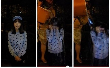 차분하게 말을 이어가던 홍진영은 물이 쏟아지기 시작하자 몸을 부들부들 떨었다. 급기야 물 세례를 다 견뎌내지 못하고 도망쳐 누리꾼들의 폭소를 자아냈다.