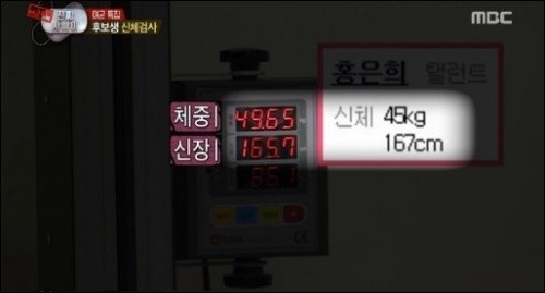 홍은희의 프로필상 키와 몸무게는 167cm에 45kg였지만, 실제 키와 몸무게는 165.7cm, 49.6kg이었다.