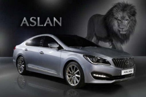 아슬란은 3000㏄급의 배기량으로 제네시스와 그랜저 중간 단계의 전륜구동 세단이다. 차명 아슬란은 '사자(Lion)'라는 의미의 터키어로 '세련되고 위풍당당한 카리스마가 돋보이는 신개념 프리미엄 세단'이라는 콘셉트를 반영한 이름이다.