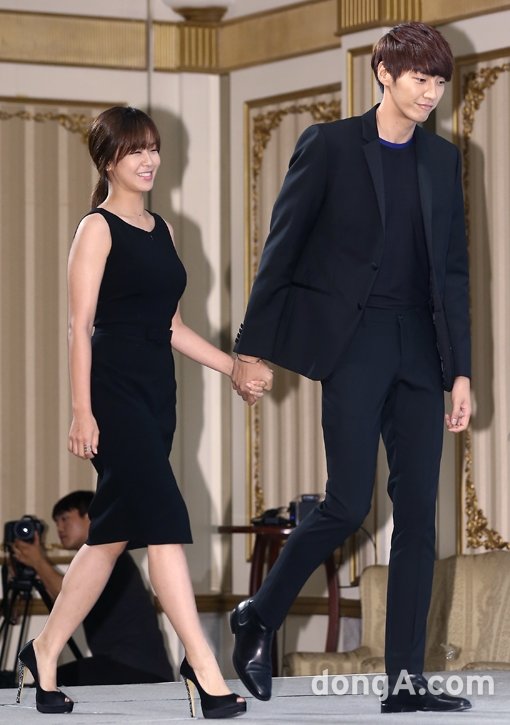 배우 경수진(왼쪽), 김영광이 25일 오후 서울시 강남구 임피리얼팰리스호텔에서 열린 tvN 금토드라마 ‘아홉수 소년’ 제작발표회에 참석하고 있다.