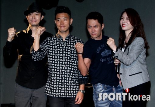 가수 윤건, 개리, 이기찬, 왁스(왼쪽부터)가 26일 오후 서울 영등포구 여의도 IFC몰 내에서 진행된 컴백 쇼케이스에 참석해 포토타임을 갖고 있다.