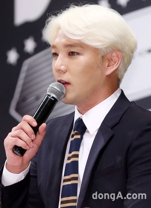 그룹 슈퍼주니어의 강인이 28일 오전 서울 강남구 임피리얼팰리스호텔에서 열린 슈퍼주니어 7집 'MAMACITA(마마시타)' 출시 기자회견에서 인사말을 하고 있다.