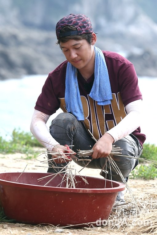 배우 송창의가 28일 오후 충청남도 태안 일대에 촬영장에서 열린 SBS ‘즐거운 家!’ 제작발표회에서 아궁이를 만들고 있다.