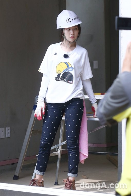 걸스데이의 멤버 민아가 28일 오후 충청남도 태안 일대에 촬영장에서 열린 SBS ‘즐거운 家!’ 제작발표회에서 집짓기를 하고 있다.