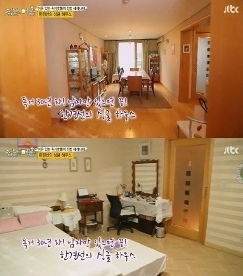 방송에 공개된 한경선의 집은 독거생활 30년차답게 가구배치들이 깔끔했으며, 넓은 침실과 파우더룸까지 있었다.