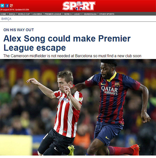 스페인 스포츠 전문매체 ‘스포르트’는 29일(이하 한국시각) “송이 프리미어리그로 복귀할 것”이라고 보도했다.