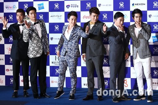 개그맨 허경환, 김기리, 송병철, 서태훈, 장기영, 신승윤이 29일 오후 부산광역시 해운대구 영화의 전당에서 열린 ‘제2회 부산국제코미디페스티벌’에서 포토타임을 하고 있다.