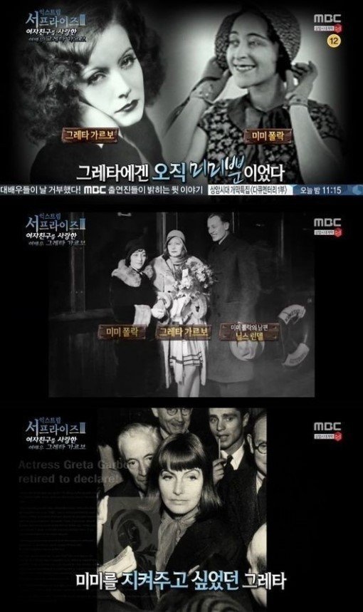 MBC ‘신비한 TV 서프라이즈’(이하 서프라이즈) 31일 방송에서는 20세기 최고의 여배우라 불리는 그레타 가르보와 동성 연인 미미 폴락의 이야기가 전파를 탔다.