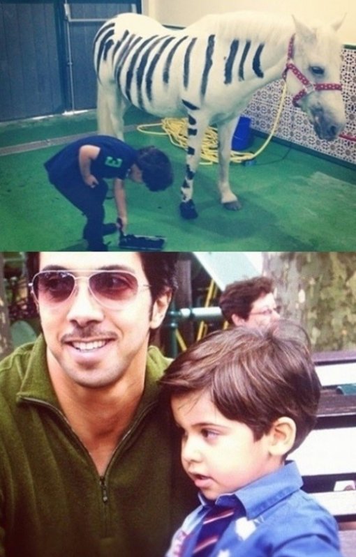 또 만수르는 SNS를 통해 하얀 백마를 물감으로 칠해 얼룩말로 만드는 '그림 공부'를 하고 있는 아들의 모습을 공개하기도 했다.