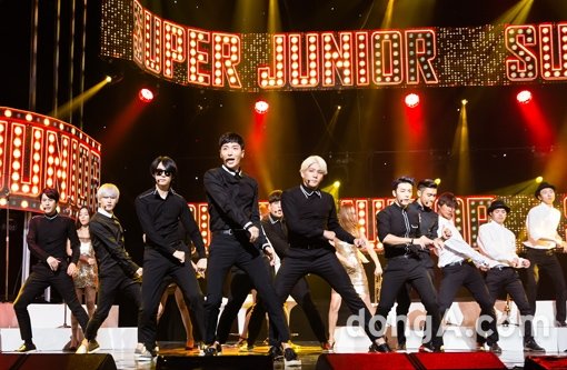 그룹 슈퍼주니어가 4일 오후 서울 마포구 CJ E&M센터에서 열린 Mnet 엠카운트다운 무대에서 화려한 공연을 펼치고 있다.