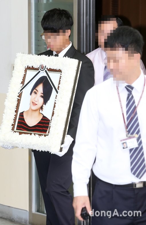 5일 오전 서울 성북구 고려대학병원 장례식장에서 열린 레이디스코드의 故은비의 발인식에서 고인의 영정이 운구차량으로 이동되고 있다.