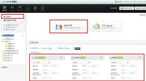 스마트-HD는 PC의 파일을 곧장 올리는 웹 업로드와 FTP에 있는 파일을 끌어와 올리는 FTP 업로드 중 하나를 선택할 수 있다. 여기서는 ‘파일 선택’으로 웹 업로드를 해보자. 참고로 스마트-HD는 동영상 업로드와 동시에 각 상황에 맞는 품질로 변환을 하는 인코딩이 가능하다. 파일 선택 하단의 ‘인코딩 설정’에서 이를 설정 가능하다.