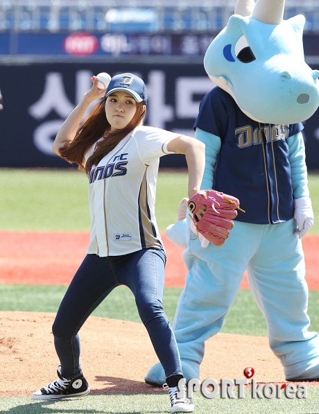 7일 오후 마산야구장에서 열린 `2014 프로야구` NC 다이노스 대 KIA 타이거즈 경기전 그룹 에잇폴리 김수아가 멋진 시구를 선보이고 있다.