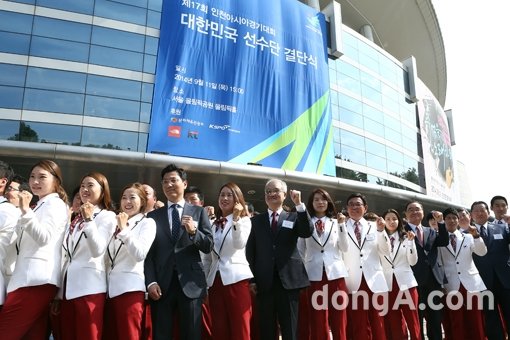 이날 인천아시안게임 한국선수단 결단식에는 정홍원 국무종리, 김종덕 문화체육관광부 장관, 김정행 대한체육회장 등이 참석해 한국선수단을 격려했다.