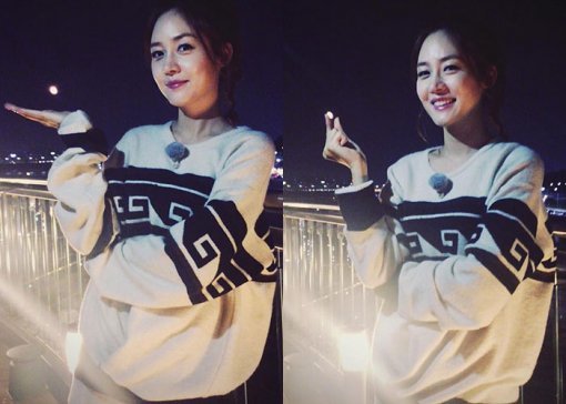 방송인 성유리가 달과 함께 찍은 인증샷을 공개했다.