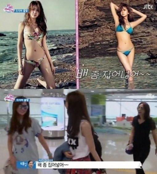 이에 이태임은 화보 속 포즈를 우스꽝스럽게 재현하면서 “수영복 화보 촬영 때 포토그래퍼가 ‘배 좀 집어 넣어’라고 했다”고 말해 웃음을 선사했다.