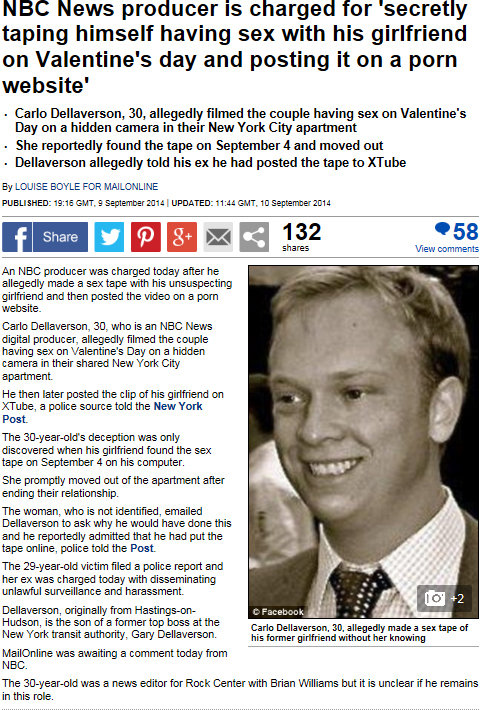 NBC 뉴스 디지털 프로듀서 카를로 델라버슨이 연인과의 성관계 장면은 담은 동영상을 사이트에 올려 체포됐다.