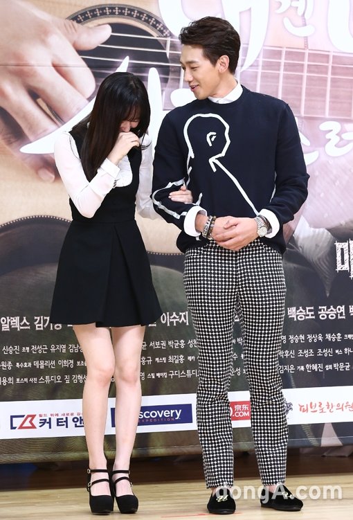 배우 크리스탈(왼쪽), 정지훈이 15일 오후 서울시 양천구 SBS사옥에서 열린 새 수목드라마 ‘내겐 너무 사랑스러운 그녀(이하 내그녀)’ 제작발표회에서 포토타임을 하고 있다.