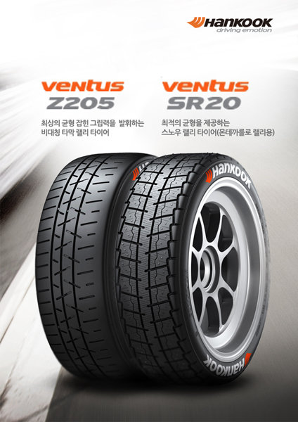 한국타이어가 랠리용 레이싱 타이어 2종을 국내 출시했다. 세계 3대 모터스포츠 대회인 WRC(월드 랠리 챔피언십)에 공식 공급되며 기술력과 품질을 인정받고 있는 ‘벤투스 SR20(Ventus SR20)’과 ‘벤투스 Z205(Ventus Z205)’이다.