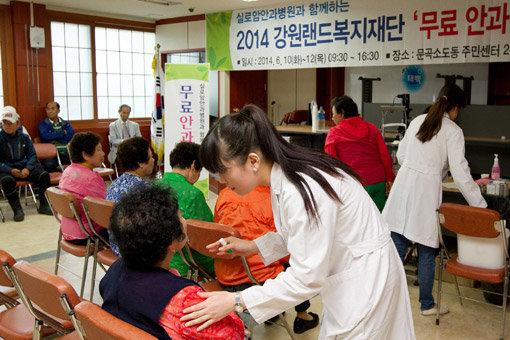 안과진료는 폐광지역 4개 시·군의 안과병원이 없는 지역을 방문해 검진과 치료를 지원하는 강원랜드복지재단 이동진료사업 중 하나로 눈과 관련된 질환이나 상담이 필요한 주민이면 누구나 도움을 받을 수 있다. 2010년부터 5년간 폐광지역 주민 5900명이 혜택을 받았다. 올해 마지막 진료는 10월28일부터 삼척시에서 진행할 예정이다.