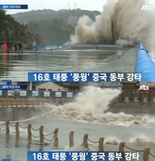 지난 22일 16호 태풍 풍웡이 중국을 강타하면서 주민 20만 명이 대피하는 소동이 일어났다.
