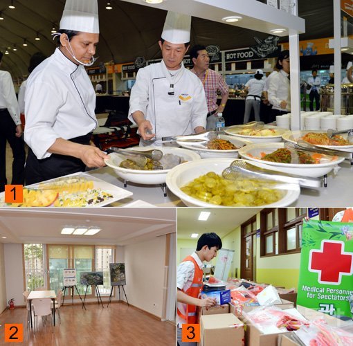 2014인천아시안게임이 열리는 동안 가장 바쁜 곳은 구월 아시아드선수촌이다. 이번 대회에 참가한 1만여명의 각국 임원과 선수들이 머물고 있어 24시간 쉼 없이 운영되고 있다. 선수들의 식사를 담당하는 식당(사진 1). 선수들이 머무는 숙소 내부(사진 2). 선수들의 건강을 책임지는 선수촌병원(사진 3). 스포츠동아DB