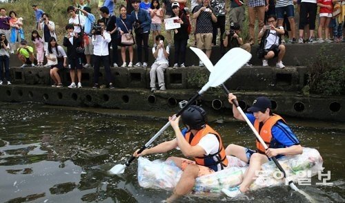 한강사업본부는 지난 28일 대학생 3명이 뜯지 않는 봉지 과자를 뗏목으로 이어 만든 뒤 서울 한강에서 도하를 시도했다고 밝혔다.