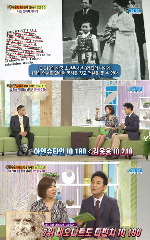 또 “IQ는 200 이상으로 측정될 수 없지만 한국 김웅용에게 210의 수치가 부여됐다”고 소개됐다.