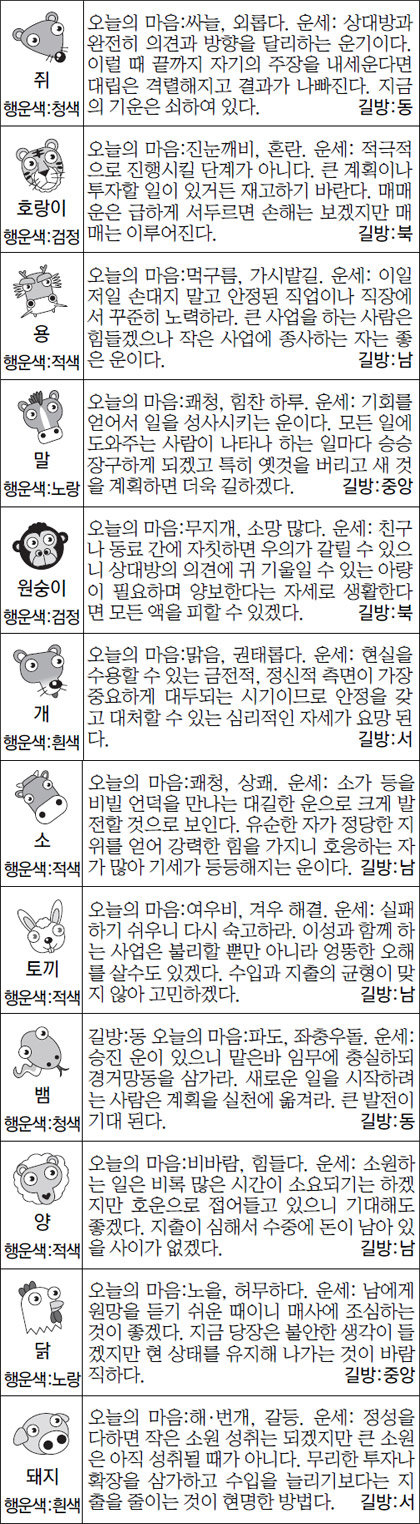 금일복권, 주식, 부동산매입 행운의 띠: 호랑이,말,개