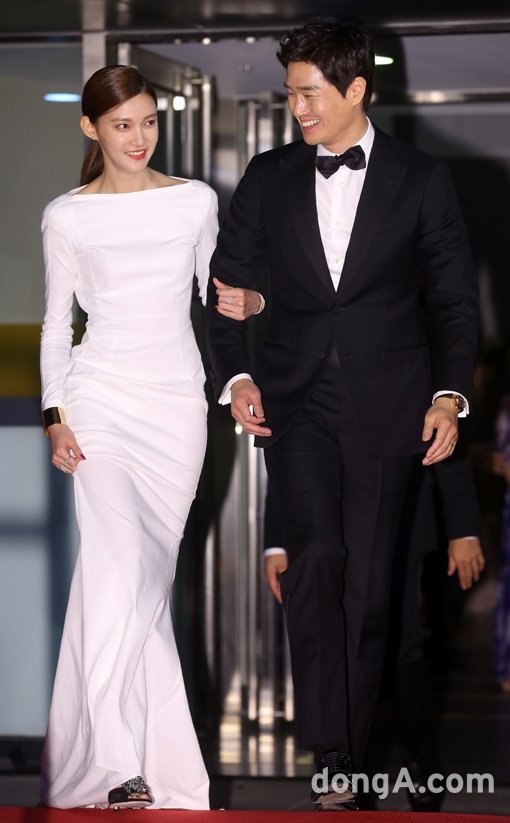 배우 차예련(왼쪽)과 유지태가 2일 오후 부산 해운대구 우동 영화의전당에서 개막한 제19회 부산국제영화제에 참석하고 있다.
