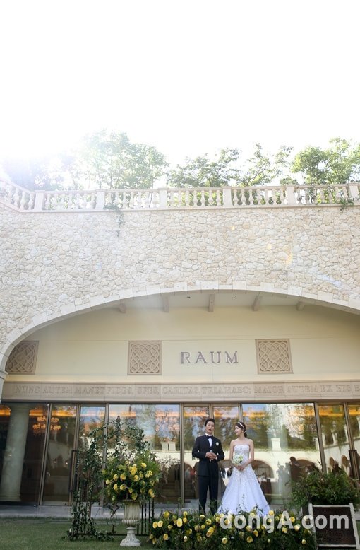배우 인교진과 소이현이 4일 오후 서울 강남구 더 라움 그랜드볼룸 정원에서 열린 결혼식 기자간담회에서 다정한 포즈를 취하고 있다.