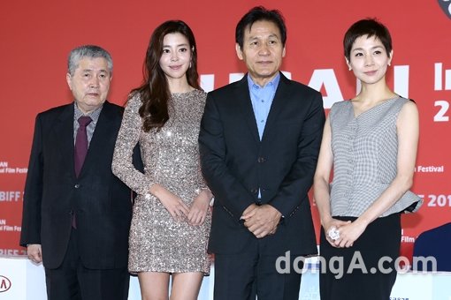 임권택 감독(왼쪽부터), 배우 김규리, 안성기, 김호정이 5일 오후 부산광역시 해운대구 월석아트홀에서 열린 영화 ‘화장’의 갈라프레젠테이션에서 포토타임을 하고 있다.